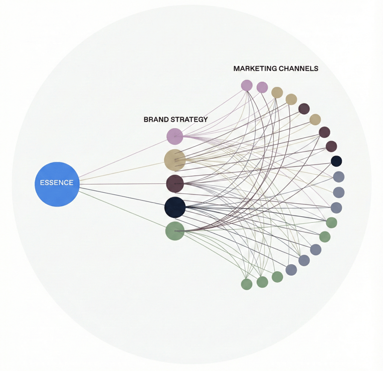 We help you uncover the irreducible truth of your brand—essence, worldview, and natural advantage. This work reveals who you are and what only you can be, creating your unique niche in the market.